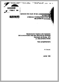 H 1 RECHERCHE DE L'ORIGINE ET DE L'EXTENSION DE LA CONTAMINATION DES EAUX DES PUITS DU STIERKOPF COMMUNE DE MUTZIG (BAS RHIN) PAR DES SOLVANTS CHLORES. NOTE COMPLEMENTAIRE.