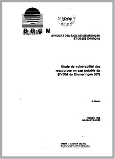 H 1 ETUDE DE VULNERABILITE DES RESSOURCES EN EAU POTABLE DU SIVOM DE DIEMERINGEN (BAS RHIN)
