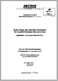 H 1 ETUDE CRITIQUE DES METHODES D'EVALUATION DE LA QUALITE BIOLOGIQUE DES COURS D'EAU.APPLICATION A UN COURS D'EAU DE L'OISE