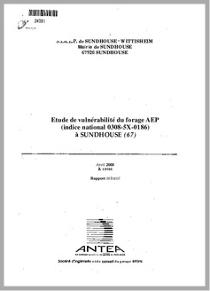 H 1 Etude de vulnérabilité du forage AEP (indice national 0308-5X-0186) à SUNDHOUSE (Bas Rhin).