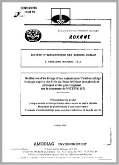 H 1 Réalisation d'un forage d'eau captant pour l'embouteillage la nappe captive des grès du trias inférieur sur la commune de Nitting (Moselle). Présentation du projet