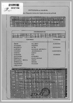 H 1 Arrêté préfectoral du 25 novembre 1992 relatif à la classification des zones inondables de la vallée de la Bruche (Bas Rhin)
