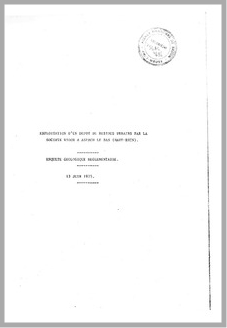 H 1 Exploitation d'un dépot de résidus urbains par la société Vigor à Aspach le Bas (Haut Rhin). Enquête géologique réglementaire.