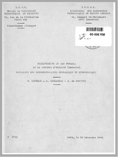 H 1 Alimentation en eau potable de la commune d'Illange (Moselle). Résultats des reconnaissances géologique et hydrologique