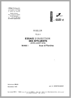 H 1 RISELOR. TD,1. Essais d'injection des effluents (avril-août 1978). Tome 1 texte et planches.