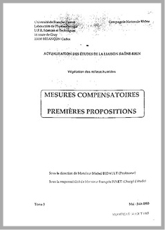 H 1 Actualisation des études de la liaison Saône Rhin. Végétation des milieux humides. Mesures compensatoires. Premières propositions. Tome 3.