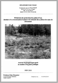 H 1 Périmères de protection des points d'eau destinés à la consommation humaine des abonnés du syndicat des eaux de Stéaumont (88). Avis de l'hydrogéologue agréé