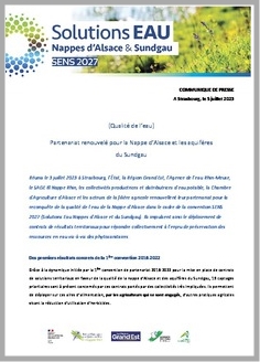 H 1 Communiqué de Presse - Solutions Eau. Nappes d'Alsace et Sundgau. SENS 2027