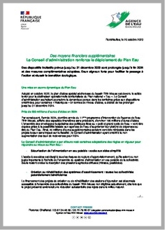 H 1 Communiqué de presse - Des moyens financiers supplémentaires. Le Conseil d’administration renforce le déploiement du Plan Eau