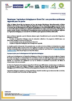 H 1 Communiqué de presse. Développer l'agriculture biologique en Grand Est : une première conférence régionale pour en parler