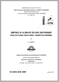 H 1 CONTROLE DE LA QUALITE DES EAUX SOUTERRAINES. ANALYSE DES PRINCIPAUX RESEAUX EXISTANTS. PROPOSITION D'UNE METHODOLOGIE