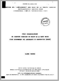 H 1 ETUDE HYDROGEOLOGIQUE DE L'AQUIFERE KARSTIQUE DU BASSIN DE LA HAUTE MEUSE. ETUDE GEOCHIMIQUE DES EMERGENCES DE NEUFCHATEAU DANS LES VOSGES ET NOTE DE SYNTHESE