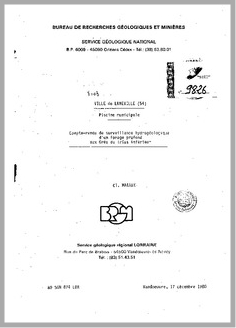 H 1 COMMUNE DE LUNEVILLE.PISCINE MUNICIPALE. COMPTE RENDU DE SURVEILLANCE HYDROGEOLOGIQUE D'UN FORAGE PROFOND AU GRES DU TRIAS INFERIEUR