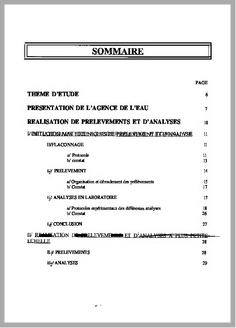ANALYSE DE L'EAU ; ECHANTILLONNAGE ; QUALITE DE L'EAU