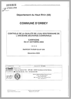 H 1 Commune d'Orbey (Haut Rhin). Contrôle de la qualité de l'eau souterraine de l'ancienne décharge communale. Campagne du 21 octobre 2003