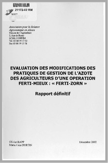 H 1 Evaluation des modifications des pratiques de gestion de l'azote des agriculteurs d'une opération Ferti Mieux : Ferti Zorn. Rapport définitif