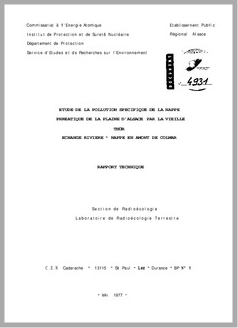 H 1 ETUDE DE LA POLLUTION SPECIFIQUE DE LA NAPPE PHREATIQUE DE LA PLAINE D'ALSACE PAR LA VIEILLE THUR. ECHANGE NAPPE RIVIERE EN AMONT DE COLMAR. RAPPORT DE SYNTHESE