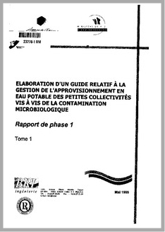H 1 ELABORATION D'UN GUIDE RELATIF A LA GESTION DE L'APPROVISIONNEMENT EN EAU POTABLE DES PETITES COLLECTIVITES VIS A VIS DE LA CONTAMINATION MICROBIOLOGIQUE. RAPPORT DE PHASE 1. TOME 1 ET 2.