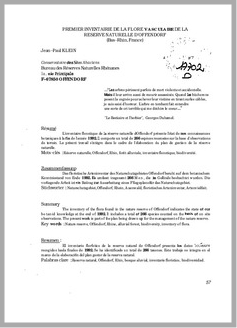 H 1 PREMIER INVENTAIRE DE LA FLORE VASCULAIRE DE LA RESERVE NATURELLE D'OFFENDORF (BAS RHIN)