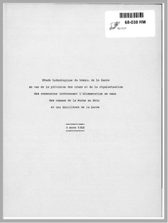 H 1 Etude hydrologique du bassin de la Sarre en vue de la prévision des crues et de la régularisation des ressources intéressant l'alimentatin en eaux des canaux de la Marne au Rhin et des Houillières de la Sarre.