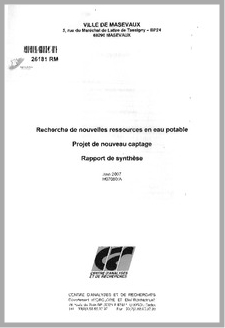 H 1 Recherche de nouvelles ressources en eau potable. Projet de nouveau captage. Rapport de synthèse. Ville de Massevaux. Haut Rhin