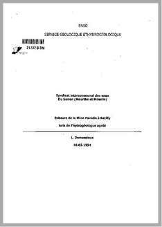 H 1 SYNDICAT INTERCOMMUNAL DES EAUX DU SOIRON.MEURTHE ET MOSELLE.EXHAURE DE LA MINE PARADIS A BATILLY.AVIS DE L'HYDROGEOLOGUE AGREE