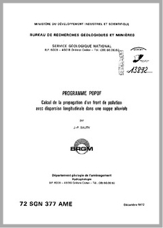 H 1 PROGRAMME POPOF.CALCUL DE LA PROPAGATION D'UN FRONT DE POLLUTION AVEC DISPERSION LONGITUDINALE DANS UNE NAPPE ALLUVIALE