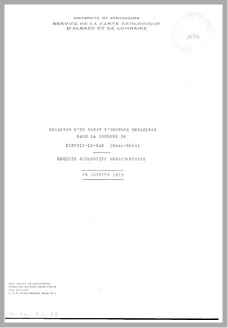 H 1 Création d'un dépôt d'ordures ménagères dans la commune de Seppois le Bas (Haut - Rhin). Enquête géologique réglementaire.