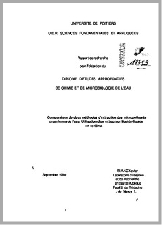CE RAPPORT TRAITE DE LA METHODE D'EXTRACTION DES POLLUANTS ORGANIQUES PAR UTILISATION D'UN EXTRACTEUR LIQUIDE-LIQUIDE EN CONTINU