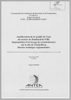 H 1 Amélioration de la qualité de l'eau du secteur de Dambach la Ville (Bas Rhin). Implantation d'un forage de reconnaissance sur le site de l'Eichelberg. Dossier technique réglementaire
