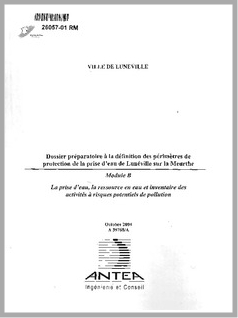 H 1 Dossier préparatoire à la définition des périmètres de protection de la prise d'eau de Lunéville sur la Meurthe. Module B : la prise d'eau, la ressource en eau et inventaire des activités à risques potentiels de pollution