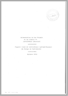 H 1 AEP de la commune de Lafrimbolle (Moselle). Rapport final de surveillance hydrogéologique du forage de Lafrimbolle.