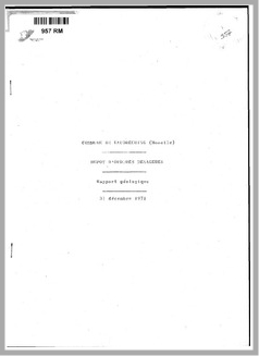 H 1 Rapport géologique concernant la création d'un dépôt d'ordures ménagères. Commune de Vaudriching (Moselle).