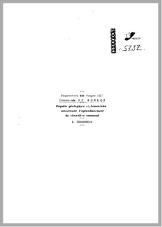 H 1 Enquête géologique réglementaire concernant l'agrandissement du cimetière communal. Commune de St Gorgon. Vosges