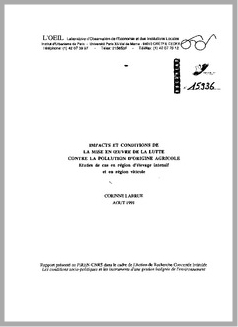 H 1 IMPACTS ET CONDITIONS DE LA MISE EN OEUVRE DE LA LUTTE CONTRE LA POLLUTION D'ORIGINE AGRICOLE.ETUDES DE CAS EN REGION D'ELEVAGE INTENSIF ET EN REGION VITICOLE