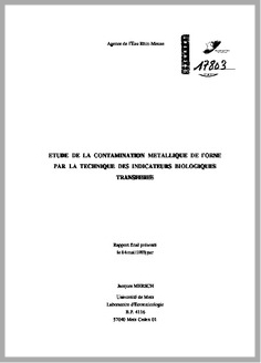 H 1 ETUDE DE LA CONTAMINATION METALLIQUE DE L'ORNE PAR LA TECHNIQUE DES INDICATEURS BIOLOGIQUES TRANSFERES