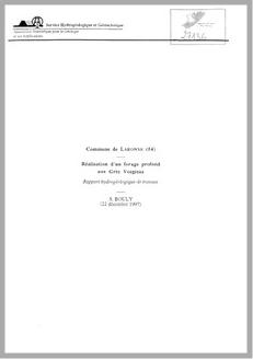H 1 Commune de Laronxe (Meurthe et Moselle). Réalisation d'un forage profond aux Grès vosgiens. Rapport hydrogéologique de travaux