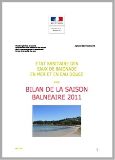 H 1 Etat sanitaire des eaux de baignade en mer et en eau douce, bilan de la saison balnéaire 2011.