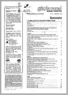 NUMERO SPECIAL DE LA REVUE GENIE RURAL CONSACRE A L'AVENIR DES INVESTISSEMENTS HYDRAULIQUES DES EXPLOITATIONS AGRICOLES DANS LE CONTEXTE DE LA POLITIQUE AGRICOLE COMMUNE : MAITRISE DES COUTS DE PRODUCTION, SECURITE DU REVENU AGRICOLE, ADAPTATION AUX EVOLUTIONS DE MARCHE, L'EUROPE ET LA SECURITE ALIMENTAIRE. UN ARTICLE DE M. JACQUES MERCKY EST CONSACRE A L'IRRIGATION ET LA RENTABILITE DES INVESTISSEMENTS PUBLICS EN PLAINE DE HAUTE ALSACE.