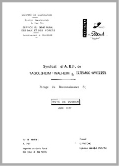 H 1 SYNDICAT D'A.E.P DE TAGOLSHEIM-WALHEIM ET LUEMSCHWILLER. FORAGE DE RECONNAISSANCE