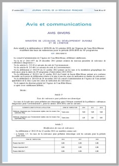 H 1 Avis relatif à la délibération n° 2015/25 du 13 octobre 2015 de l’Agence de l’eau Rhin-Meuse