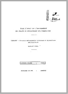 H 1 ETUDE D'IMPACT SUR L'ENVIRONNEMENT DES PROJETS DE DEVELOPPEMENT DE L'AQUACULTURE. RAPPORT