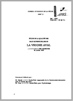 CE CONTROLE DE LA QUALITE DES EAUX DE LA VRIGNE A ETE EFFECTUE SUITE AU RENOUVELLEMENT PERIODIQUE DES MORTALITES DE POISSONS ET DES POLLUTIONS SUR CE SITE. En annexe dossier rassemblant courrier, notes techniques et coupures de presse.