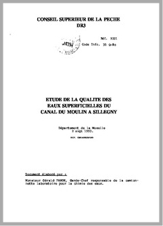 H 1 ETUDE DE LA QUALITE DES EAUX SUPERFICIELLES DU CANAL DU MOULIN A SILLEGNY (MOSELLE)