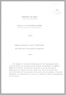 H 1 ENQUETE GEOLOGIQUE EN VUE DE L'AMELIORATION DES RESSOURCES EN EAU POTABLE DU SYNDICAT DE LA MOUSSIERE SAINT LEONARD (Vosges).
