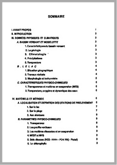 H 1 Etude de la qualité physico-chimique et biologique d'un plan d'eau afin de déterminer les opérations à effectuer pour maintenir une qualité compatible avec son exploitation touristique.