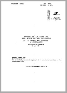 H 1 ETUDE DE LA QUALITE DES EAUX SUPERFICIELLES DE LA NIED ALLEMANDE A CREHANGE.MOSELLE