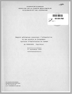H 1 Rapport géologique concernant l'alimentation en eau potable du groupement agricole d'exploitation en commun de Sundhouse (Bas Rhin).