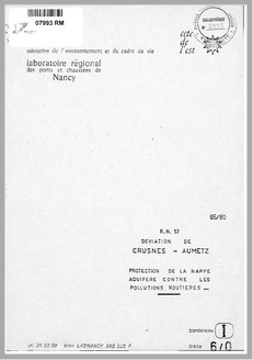 H 1 RN 52. Déviation de Crusnes Aumetz. Définition d'aménagement de protection de l'aquifère du Dogger contre les pollutions engendrées par le projet.