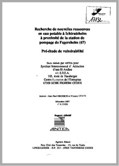 H 1 Recherche de nouvelles resources en eau potable à Ichtratzheim (Bas Rhin) à proximité de la station de pompage de Fegersheim. Pré étude de vulnérabilité. Rapport définitif.